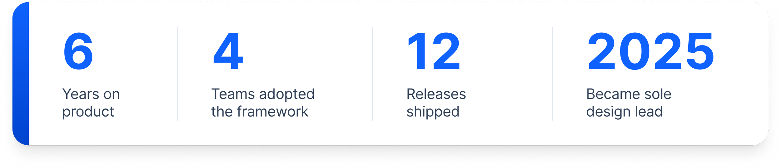 Build trust across disciplines — I led the QA process, onboarded two new PMs, and ran cross-team collaboration calls to keep everyone focused on the right design problems